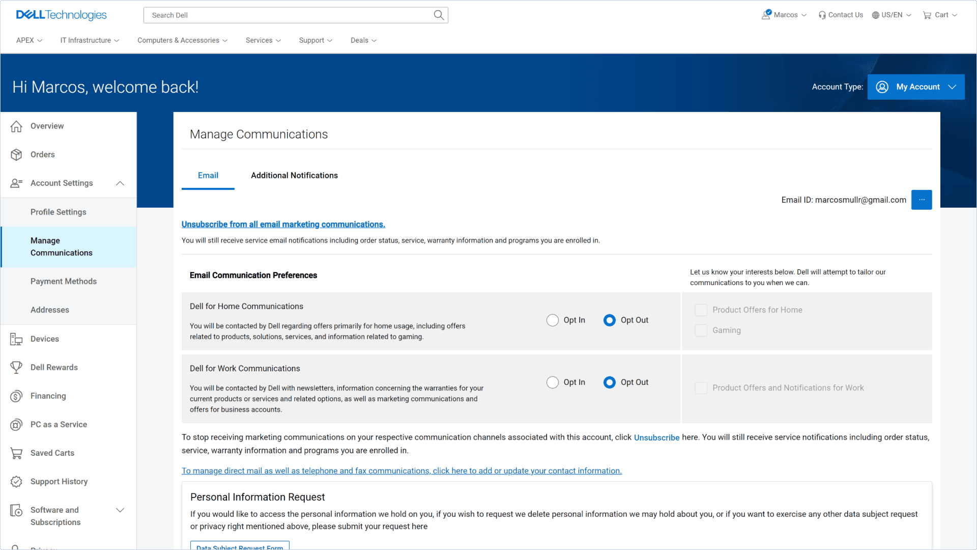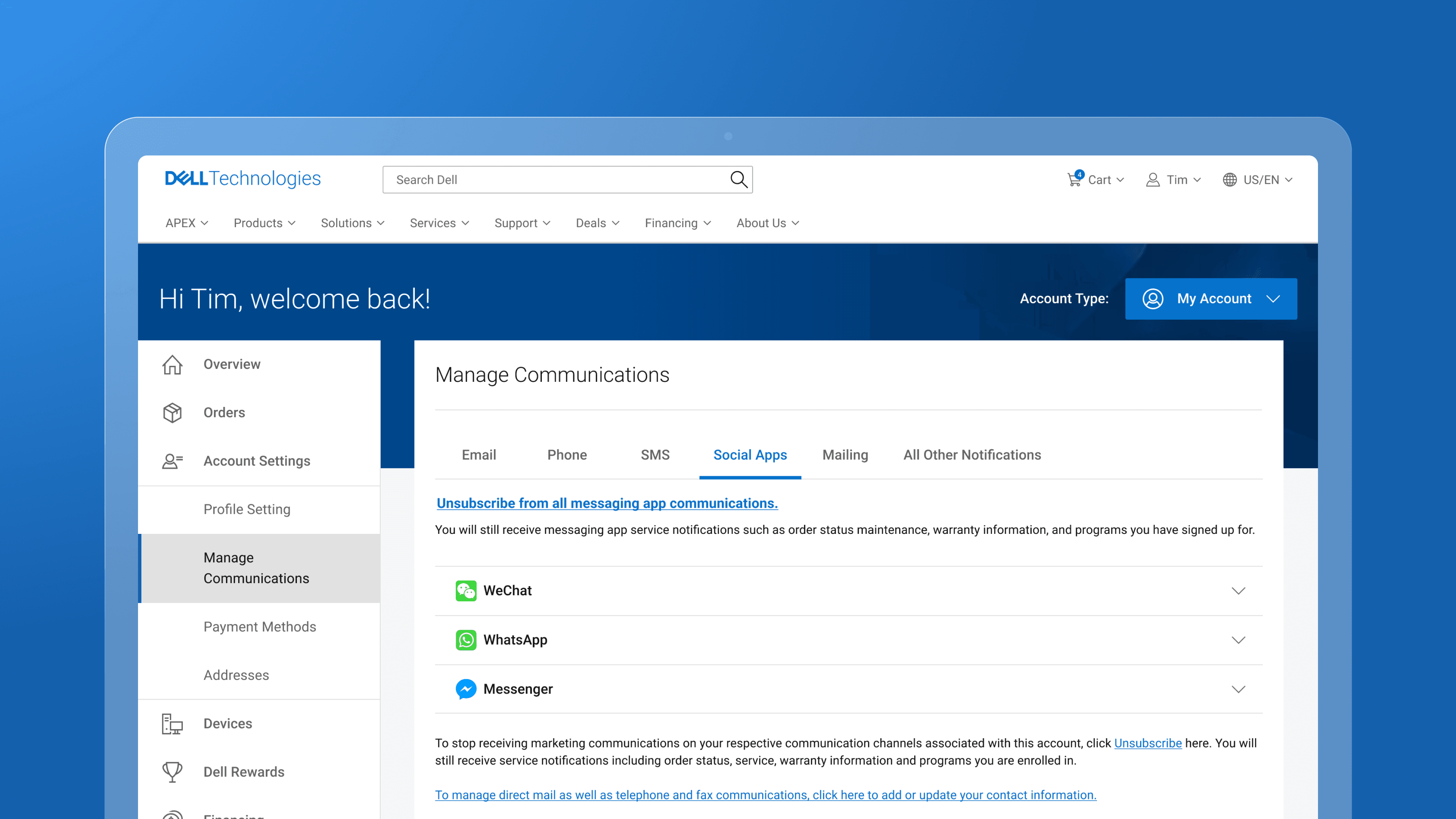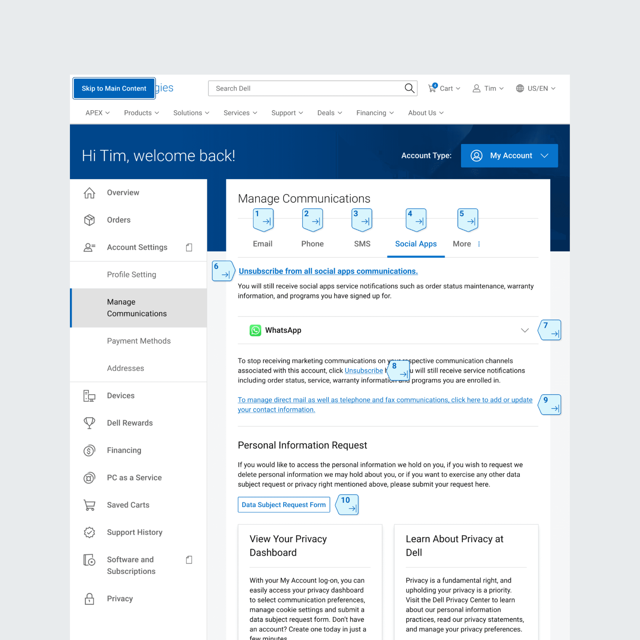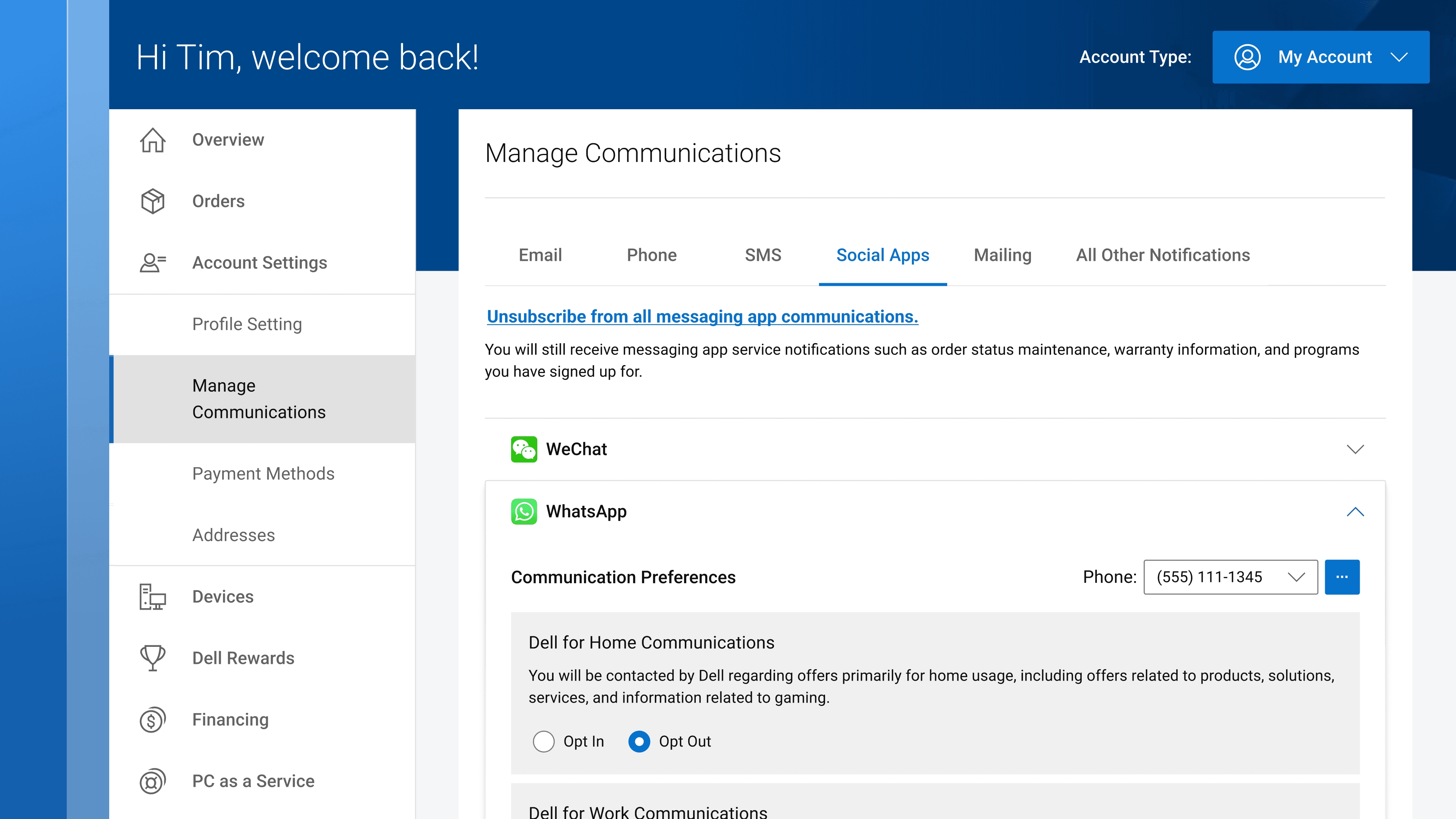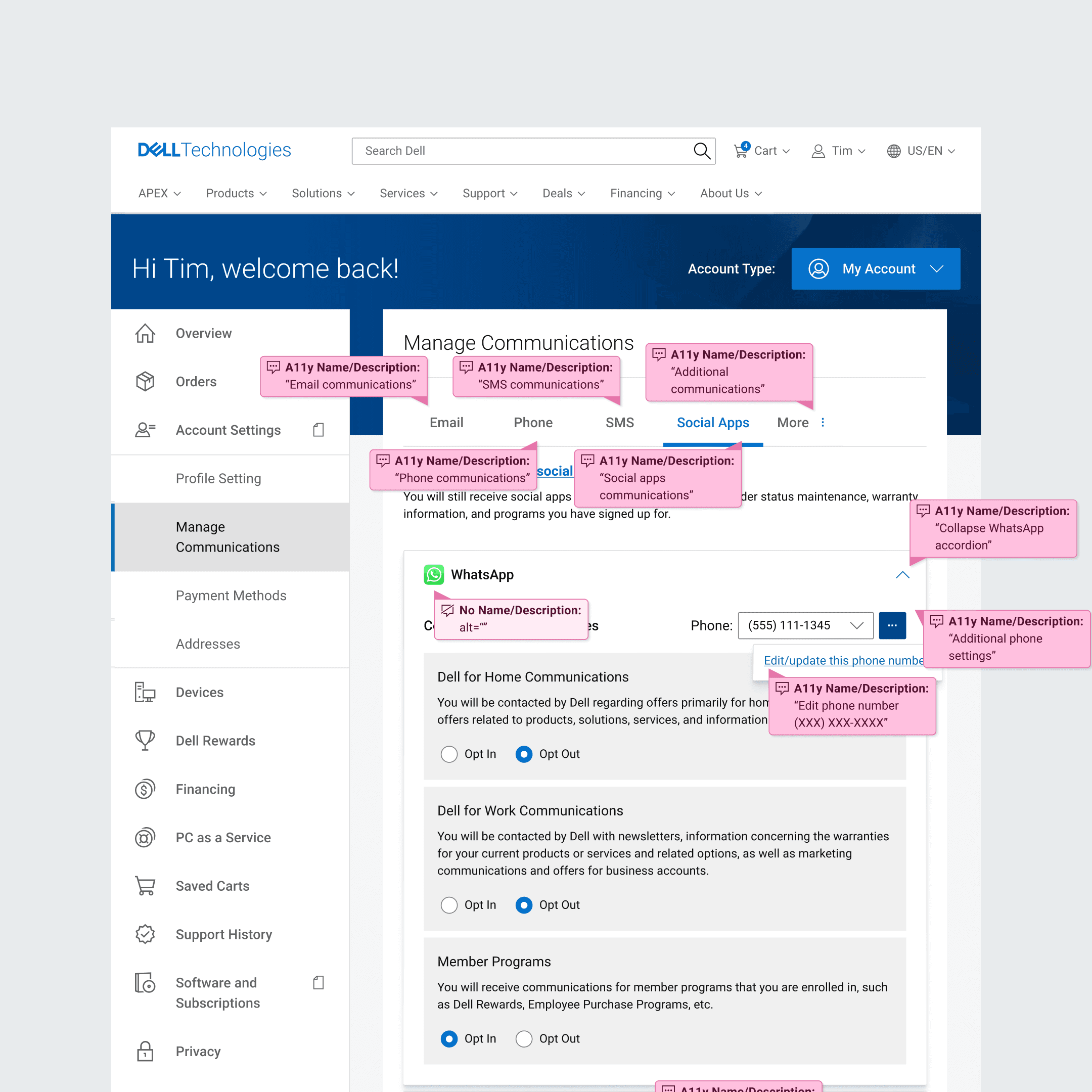Users can access the Manage Communications menu in their Dell.com account to opt into marketing communications via email, phone, and other channels — except WhatsApp. As a result, users couldn't opt into marketing communications via WhatsApp (discounts, coupons, etc.) directly from Dell.com, preventing leads to be captured.