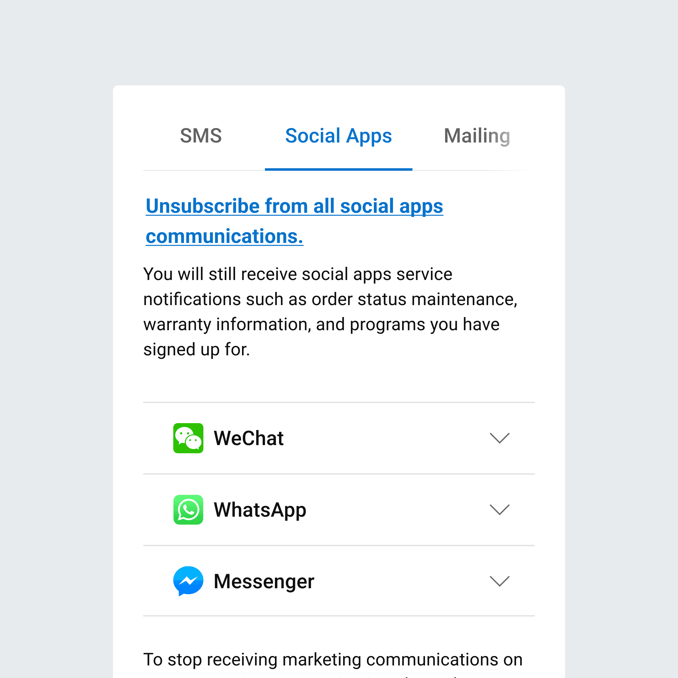 The main project goal was to enable the possibility of customers opting in and out from WhatsApp and other messaging apps inside PMX.